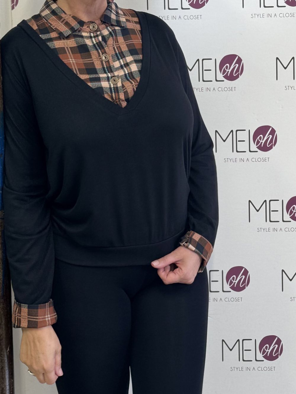 μπλούζα με ενσωματωμένο πουκάμισο στο μπούστα και στα μανίκια