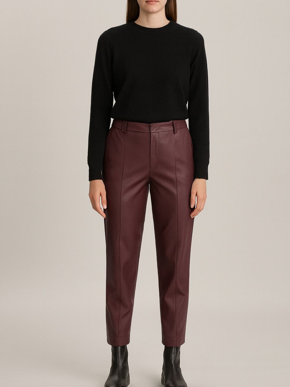 Γυναικείο παντελόνι eco leather , με minimal και διαχρονικό σχεδιασμό. Διαθέτει ελαστική μέση στο πίσω μέρος για άνετη εφαρμογή και σταθερή γραμμή μπροστά με θηλάκια για ζώνη. Η ίσια, ελαφρώς άνετη γραμμή του το καθιστά ιδανικό για καθημερινές αλλά και πιο chic εμφανίσεις.
