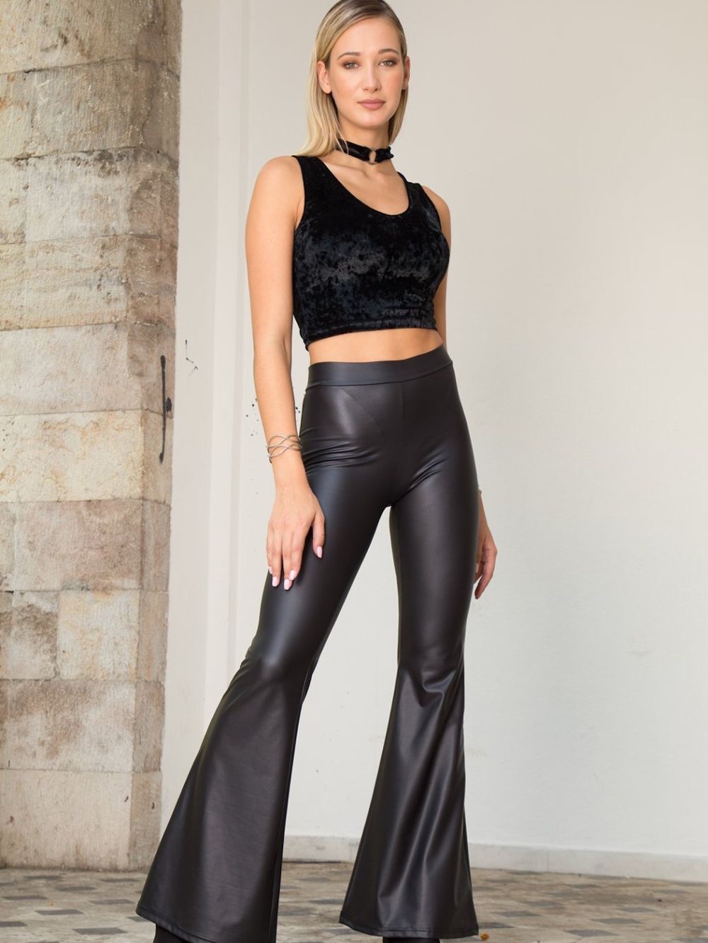 παντελόνι καμπάνα σε ματ δερματίνη